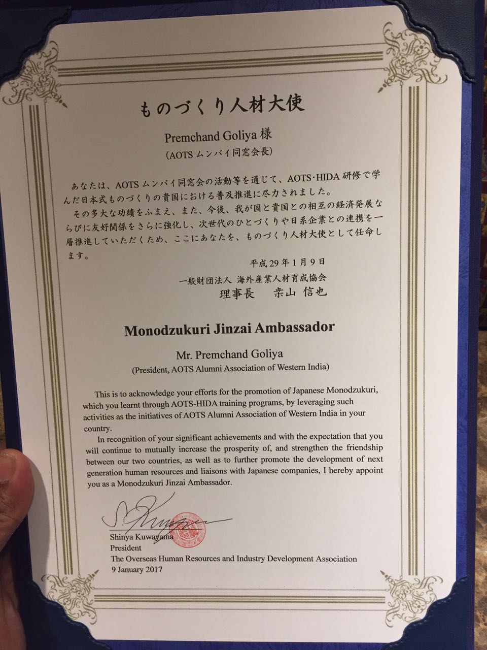 | Acknowledgement to Mr. Premchand Goliya for MONOZUKURI 1 2 | |||